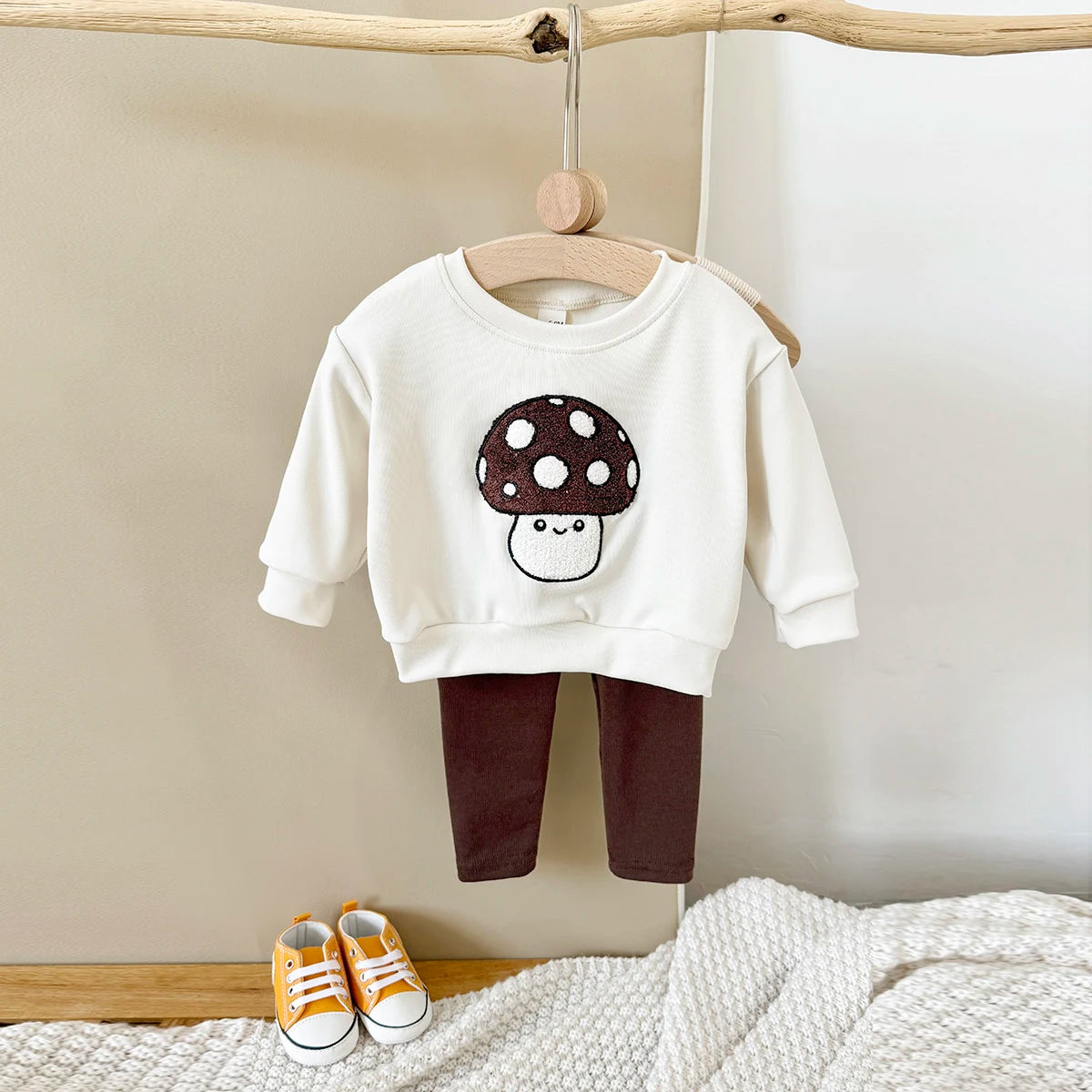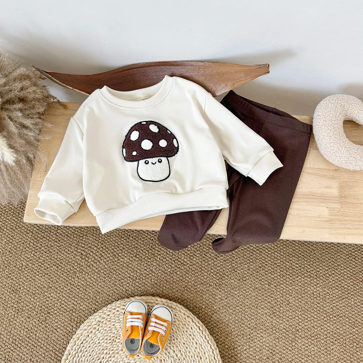 Mushroom Embroidery Pants Set