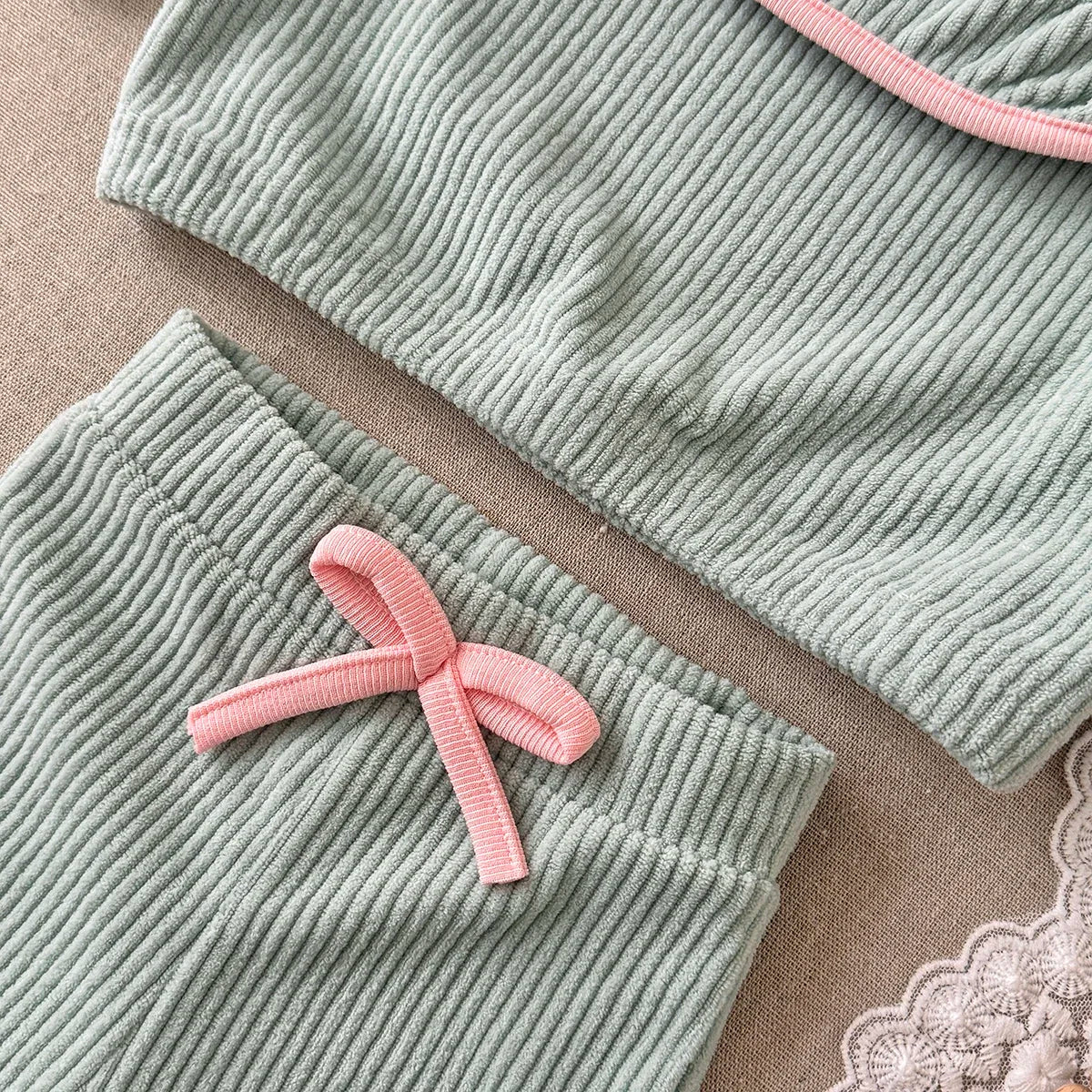 Corduroy Color block Pants Set