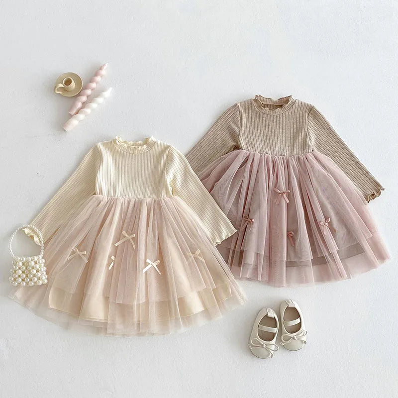 Long Sleeved Tulle Ribbon Dress