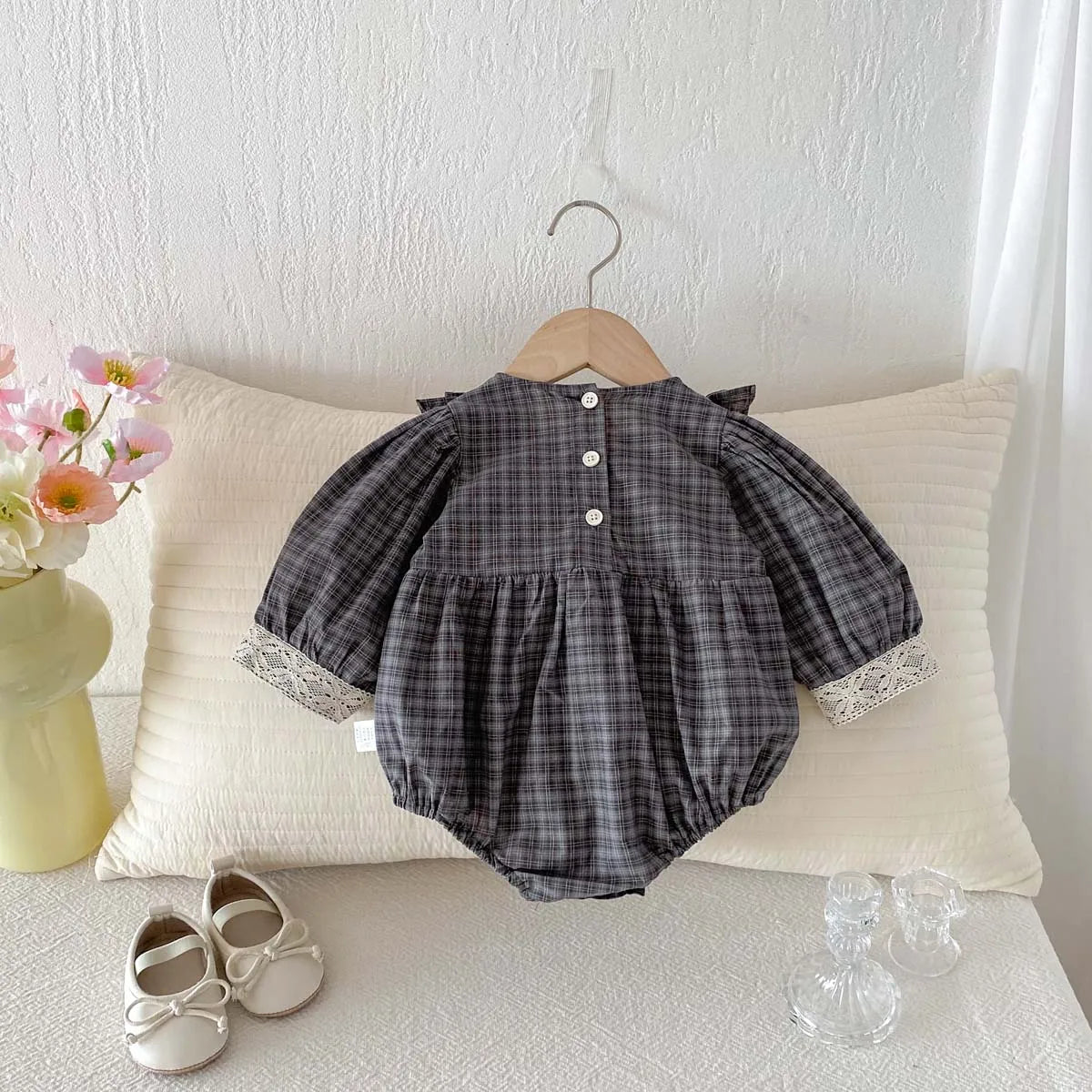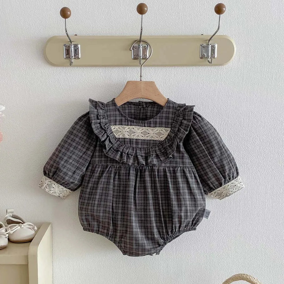 Retro Checkered Lace Detail Romper